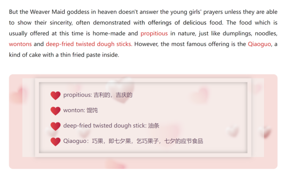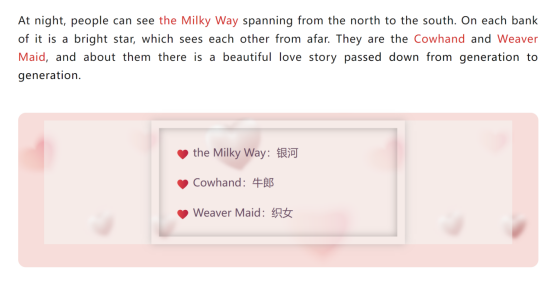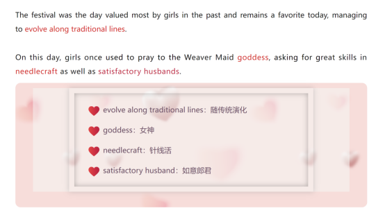 ● 学生任务:课前词汇小考:WeLearn智慧学习平台,复盘“七夕节”与“中国传统文化”相关内容的语言储备;