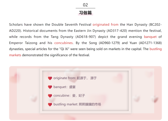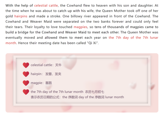 2. 对应章节:Unit 2Text BQixi : The Story, Past and Present, ofChinese Valentine’sDay