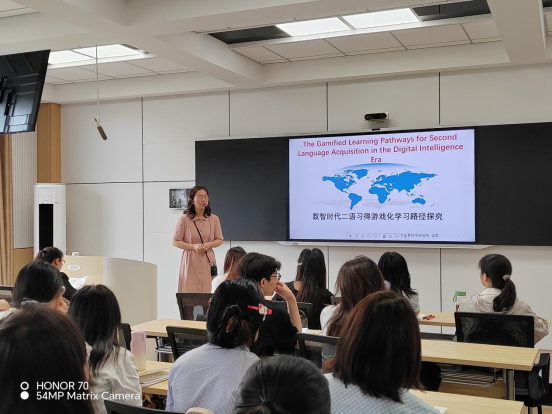 2025年6月3日,一场聚焦“数智时代语言教育未来”的校行合作课堂在beat365在线唯一官网登录beat365在线唯一官网登录开讲。学院特邀九江市教育科学研究所专家谈笑老师,为英语师范生带来主题为《数智时代二语习得游戏化学习路径探究》的前沿讲座,深度解析技术赋能下的语言学习新生态。