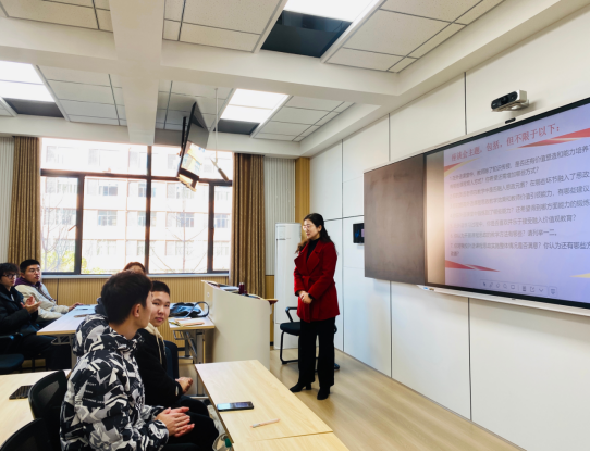 座谈会围绕“课程思政如何提质、价值引领如何落地” 展开深度研讨。会上,学生们纷纷分享了他们大学英语课程思政带来的收获,肯定了大学英语老师们的教学效果。理学A2511班一位同学说:“老师从不说教,而是结合春节、元宵等传统节日,教我们英文表达,让我们在学语言的同时,更懂中华文化的魅力。” 材料A2541班一位同学建议:“希望多增加‘用英语讲中国故事’的实践活动,增加文化知识的英文输出,既能提升口语,又能把非遗、家风这些文化‘讲给世界听’”。 旅游A2412班一位同学说:“我们老师不仅在课堂上引导我们讲中国故事,还在课外实践中让我们加入文化团队,教我们如何去挖掘和讲好中国故事,特别是江西故事,赣鄱文化,培养我们的家国情怀”,还有学生提议,在教材中加入更多“中国案例”,比如用英语解读 “乡村振兴”“精准扶贫”,让课程思政更贴近时代,产生更多共鸣。