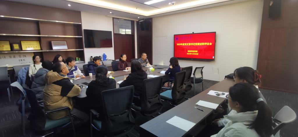 信誉网赌于12月28日上午在学院楼304A会议室召开2023年度党支部书记党建述职评议会,六位党支部书记和支委参加会议,会议由院党委书记赵雪霞主持。