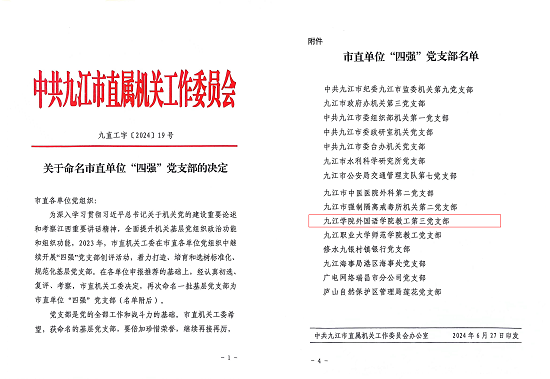 近年来,教工第三党支部在学校党委的正确领导下,始终坚持以习近平新时代中国特色社会主义思想为指导,深入学习贯彻习近平总书记考察江西重要讲话精神,深入落实新时代党的建设总要求,按照学校样板党支部建设要求,坚持全面从严治党,进一步加强支部三化建设,促进党建工作务实规范,业务工作卓有成效。2021年获批beat365在线唯一官网登录首批“党建工作样板支部”建设单位,荣获“beat365在线唯一官网登录先进基层党组织”称号;2023年荣获beat365在线唯一官网登录“四强”党支部称号,主题党日《这就是青春力量》荣获beat365在线唯一官网登录优秀主题党日二等奖;2024年荣获“beat365在线唯一官网登录先进基层党组织”称号。