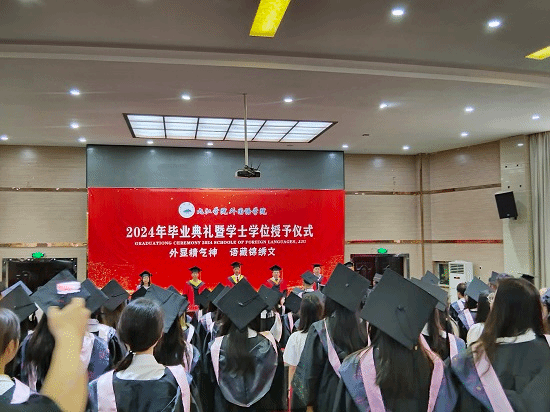 王伟副院长宣读了2024届毕业生名单,项莉副院长宣读了2024届授予学士学位学生名单,江山副书记宣读了2024届优秀毕业生名单。