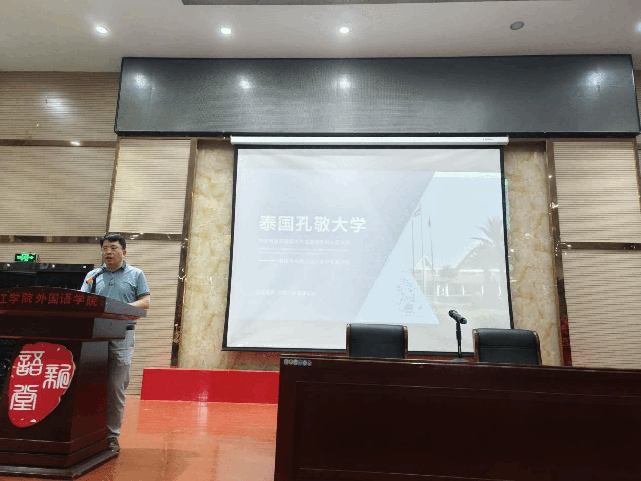 推荐会伊始,周志高以热情洋溢的致辞拉开了本次推荐会的序幕。他首先向同学们详细介绍了泰国孔敬大学办学历史和基本情况,中泰联合培养硕士的模式、学习内容和学历认证等内容,让同学们对孔敬大学有了进一步的认识和了解。