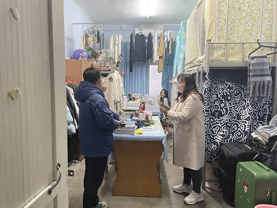 安全排查过程中,辅导员老师深入学生宿舍,查看了学生宿舍安全用电等情况,详细询问了同学们近期学习、生活和明天即将举行的四六级考试的准备情况;与毕业班同学就近期论文准备、毕业实习、求职应聘等情况进行了深入交流,了解了毕业目前的就业状况。辅导员老师们叮嘱同学们期末临近,在宿舍里要特别注意消防安全、用电安全、饮食安全、个人人身安全和个人财物安全。