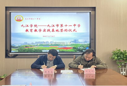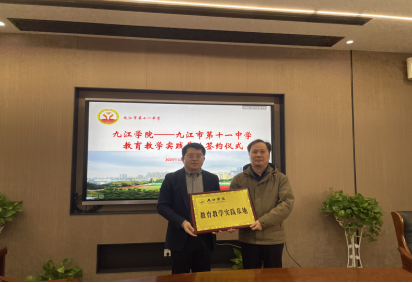 11月16日上午,beat365在线唯一官网登录与九江市第十一中学共建教育教学实践基地签约挂牌仪式在九江市第十一中学隆重举行。beat365在线唯一官网登录院长周志高、副院长王伟、项莉一行六人与九江市第十一中党总支书记王文明、副校长吴胜平、余忠庚参加了签约仪式。