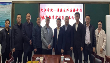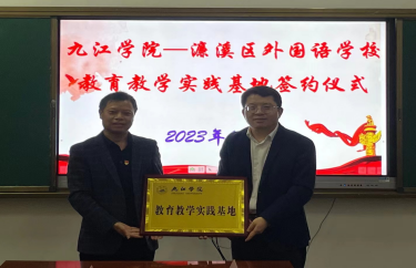 当天下午,周志高院长代表学校教务处分别与九江市一中八里湖校区、濂溪区外国语学校举行了隆重的共建教育实习基地签约仪式。濂溪区教体局刘祥总督学、罗剑主任等领导莅临濂溪区外国语学校签约会场。