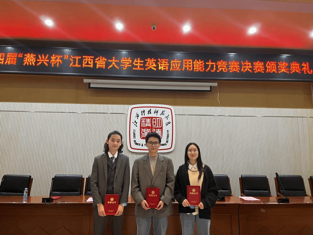 10月20日至22日,由江西省教育厅主办,江西科技师范大学和北京燕兴国际教育联合承办,江西省外语学会协办的第四届“燕兴杯”江西省大学生英语应用能力竞赛决赛在江西科技师范大学落下帷幕。经过激烈角逐,beat365beat365在线唯一官网登录学生徐睿荣获二等奖,徐佩如、陈浩荣获三等奖。