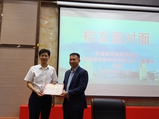 本次“校友面对面”活动邀请了beat365在线唯一官网登录2001届优秀校友李峰出席,查振华副校长为校友李峰颁发“beat365在线唯一官网登录客座教授”聘书。李峰分享了他从初出茅庐做教师到敢打敢拼创业的经历。他以“奋斗是青春最基本的底色”告诉同学们,大学期间要学好专业知识,打好专业基础;提醒同学们要利用好就业创业各个平台,从身边的小事做起,敢于创新创业;结合自己在大学期间卖鞋的经历与同学们分享了自己的创业故事。
