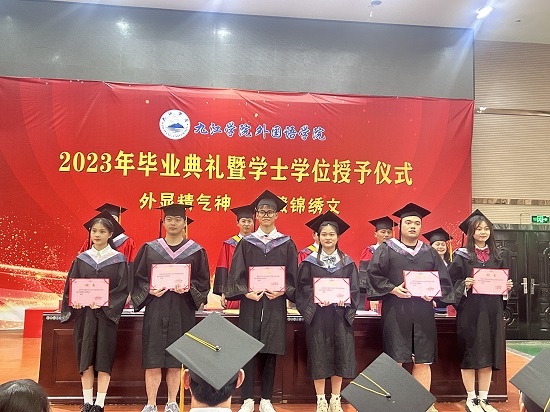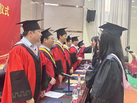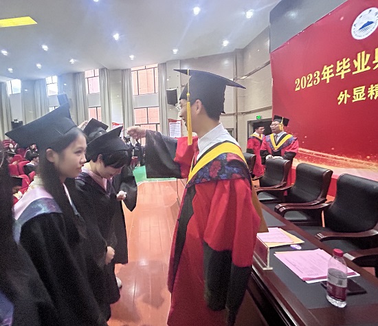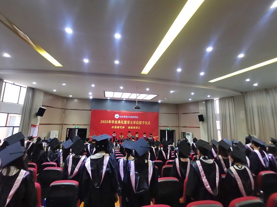 典礼上,校领导和学院领导为校友联络员颁发了聘书,为毕业代表颁发毕业证书,学位评定委员会成员一一为所有毕业拨穗正冠,授予学士学位,为毕业学子送上最深切的祝福。全场报以热烈的掌声。