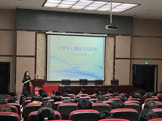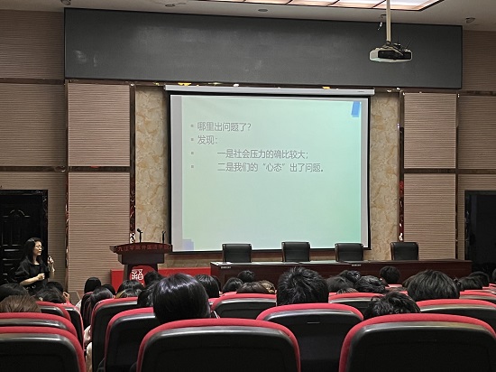 讲座伊始,朱俊婉老师先向同学们展示了全国大学生心理健康调查数据结果,并表明关注大学生心理健康教育的重要性,分析了出现心理健康问题的原因,举例分析了大学经常发生的五种心理健康问题,指出同学们要摆正心态,换位思考,从自身找原因,掌握一些人际沟通技巧,并且加强自身修养。最后,朱老师以“焦虑本身毫无可怕之处,可怕的在于我们对他的态度。”这句话作为寄语给予了在场的同学们。