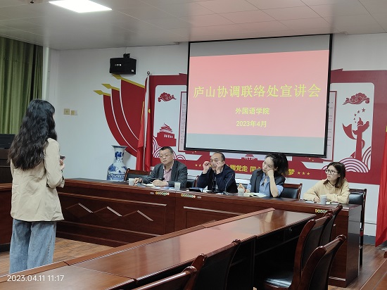 为做好2023届毕业生就业工作, 拓宽就业渠道,4月11日,庐山协调联络处在香远楼315会议室举行了招聘宣讲会。beat365在线唯一官网登录院长周志高、庐山协调联络处处长许峰一行四人、毕业班辅导员和在校毕业生三十余人参加了宣讲会。