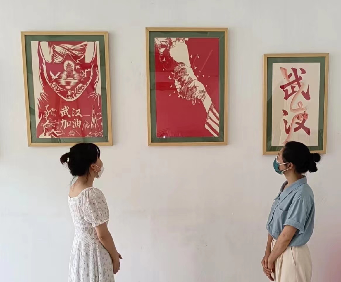 在实地考察过程中,讲解员先为大家介绍了豫章剪纸历史渊源,如何传承、整合。并展示了豫章剪纸发展至今传承人沈哲所作的代表性作品《白衣天使》《武汉加油》《武汉战疫》…等作品。在疫情最严重的时候,他与父亲通过最熟悉的剪纸艺术来表达对战胜这场疫情的信心,从而勉励大家面对疫情,共渡难关的决心。沈哲老师说过:“作为非遗传承人,希望做些力所能及的事情,创作一些作品,表达自己对决胜这场‘战役’的信心,并且与大家相互共勉,在疫情面前,愿大家坚信胜利指日可待。武汉,加油;中国,加油!”他还说:“非物质文化遗产想要得到更好的传承,就必须适应时代的发展,让更多人接受。剪纸艺术作为一种传统艺术,需要得到民众的关注和喜爱,这样才能不断焕发出生命力。”