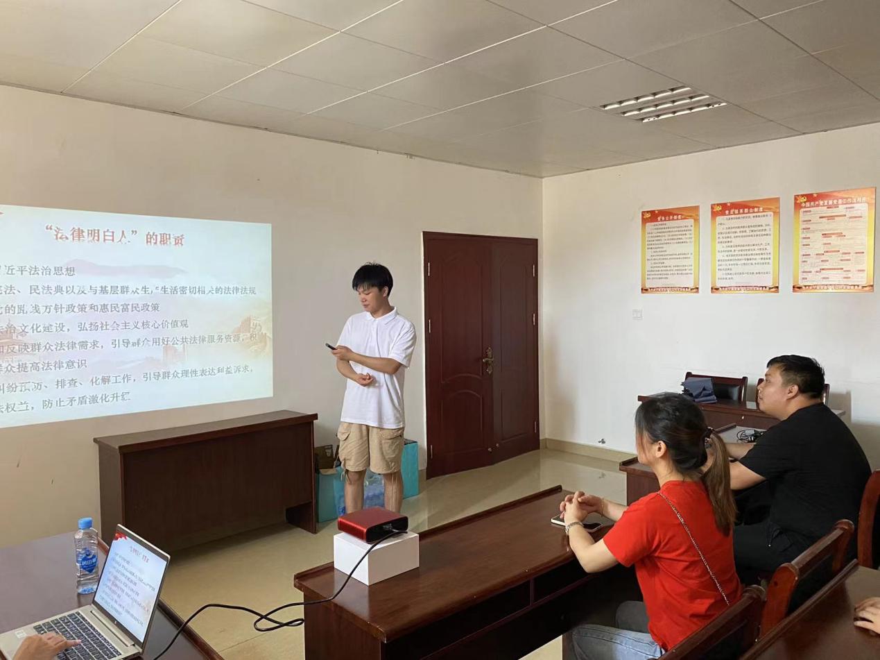 活动当天,beat365在线唯一官网登录beat365在线唯一官网登录“三下乡”社会实践服务队充分利用专业优势,通过PPT案例宣讲、走进农户家中“面对面”宣讲等方式围绕宪法、民法典、预防电信诈骗、了解民间借贷、道路交通安全、禁毒、保护消费者权益等与人民群众生活密切相关的法律法规内容进行了普法宣讲,致力于在全村形成尊法学法守法用法的良好氛围。