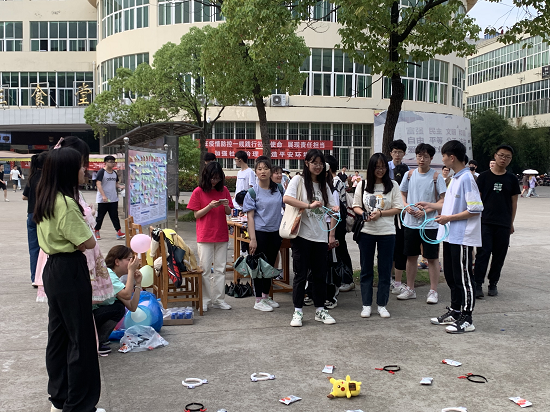 本次活动“拥抱阳光,放飞心灵”为主题,内容丰富、形式多样。活动开始前,组织人员积极有序的布置现场并准备好活动所需要的道具,现场放置了心理健康知识宣传展板,游园会拉开了帷幕,气球和各样的小奖品吸引着过路的同学纷纷加入此次活动中。“情绪垃圾桶”“许愿板”和“同舟共济、色眼识字、套圈、踩气球”的趣味游戏把活动推向了高潮。25日下午气温较高,即使这样也没能阻挡同学们参与的热情,参与活动的积极性是骄阳似火。