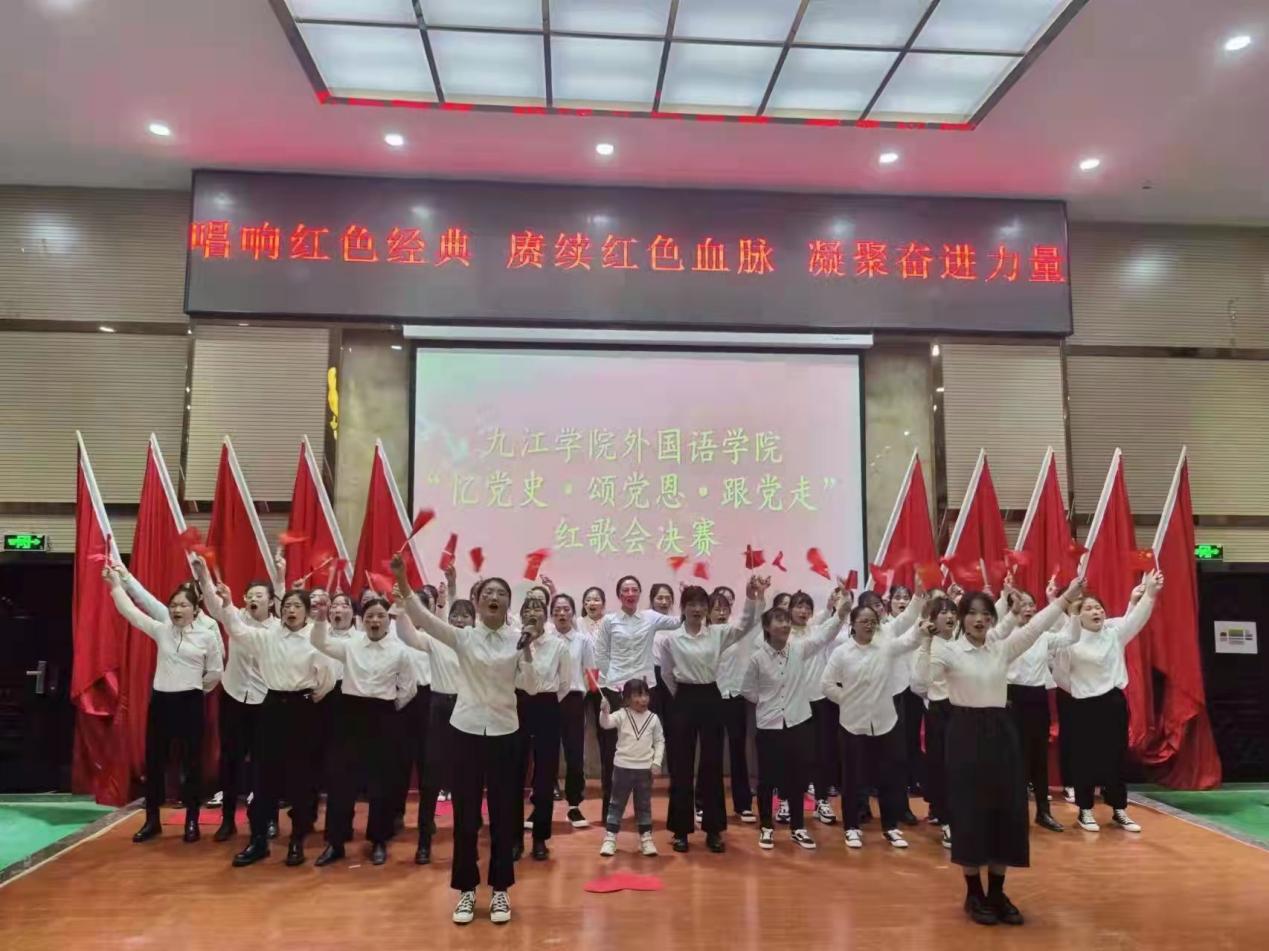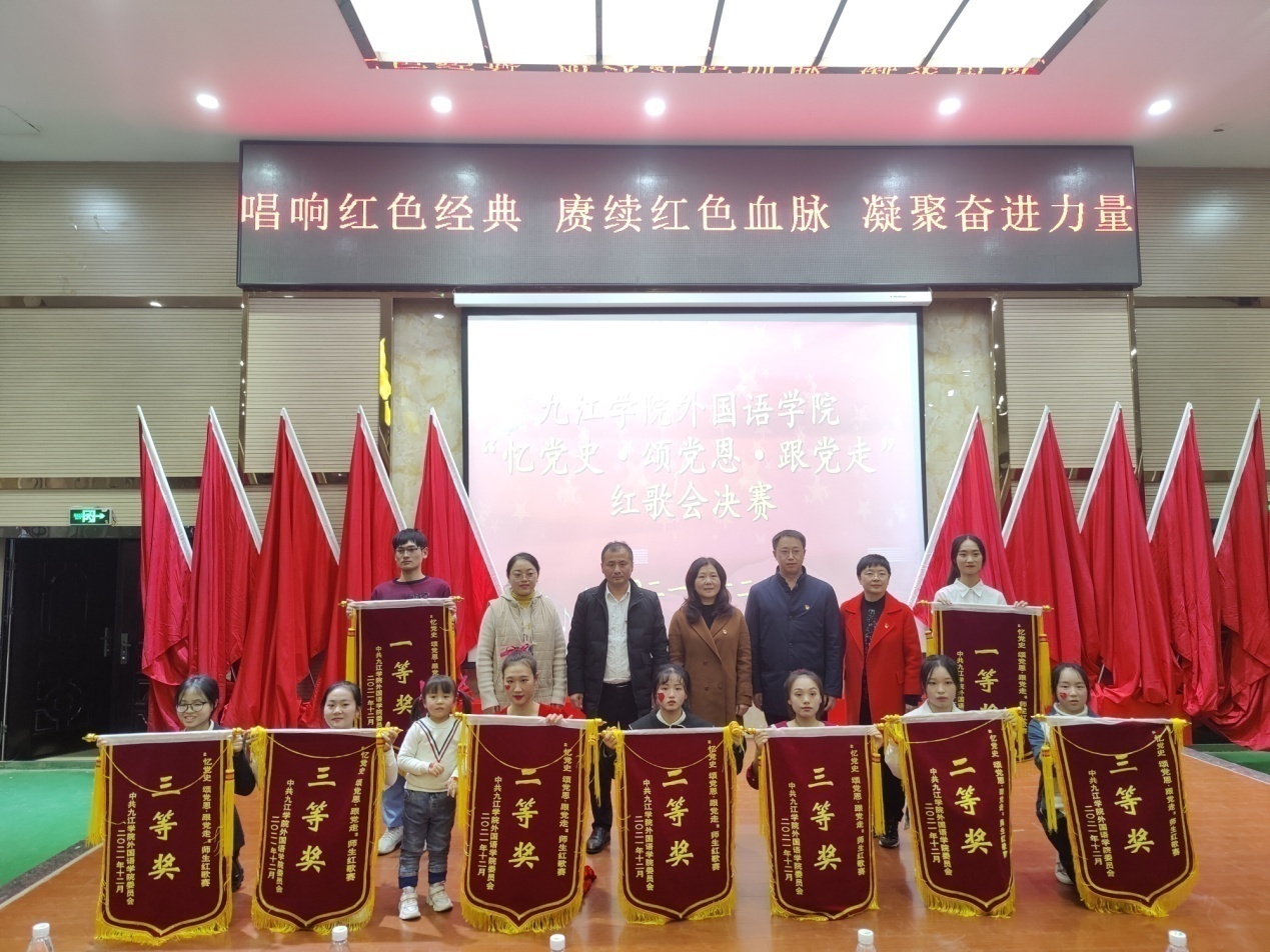 最后,评委和所有获奖班级代表进行合影留念,本次红歌比赛顺利落下帷幕。