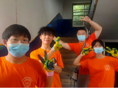 为了让东山小学的孩子们能够在童话般的校园学习,服务小队还为东山小学做了墙面油漆,为小学褪色的墙壁重新刷上蓝色,寓意着东山小学学生更好的未来。