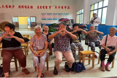 村民们手势比心对党表白
