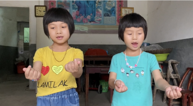 队员们教村民们手势比心