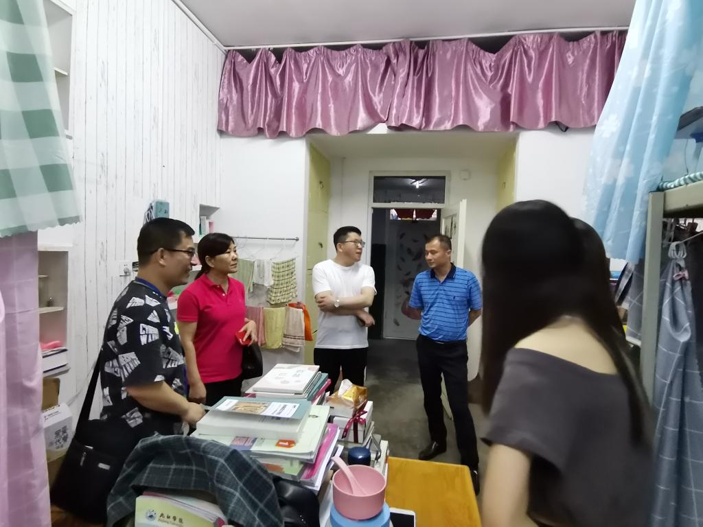 6月6日晚,beat365在线唯一官网登录院长周志高,党委书记罗其娟、党委副书记彭晓以及学生科副科长王少斌对beat365在线唯一官网登录学生宿舍进行了走访慰问。