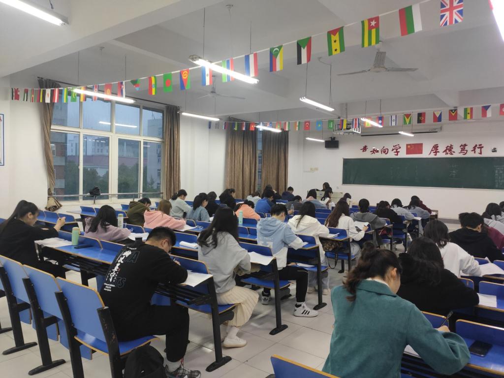 本次考试内容包括学籍管理、学生管理、评优评先制度、奖学金助学金评审办法和其他相关文件,考试题型为填空题和简答题,时间为2个小时,所有同学单人单座。考试过程中,各班考风考纪良好,每一位同学都仔细审题,认真完成试卷上的内容。考试结束,所有同学放下纸笔,助教对试卷进行收集后,大家有序离开教室。