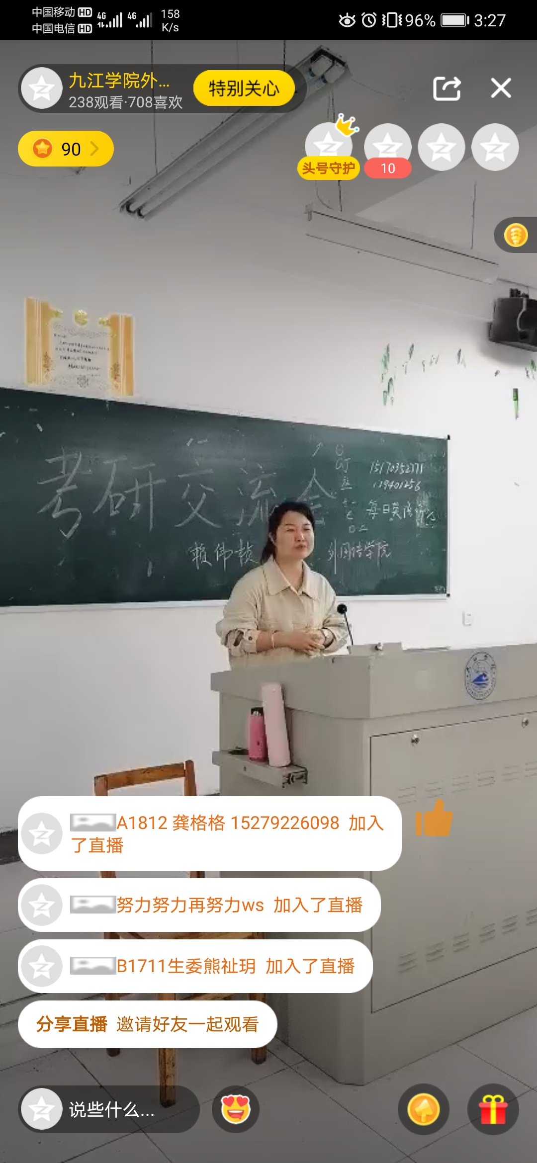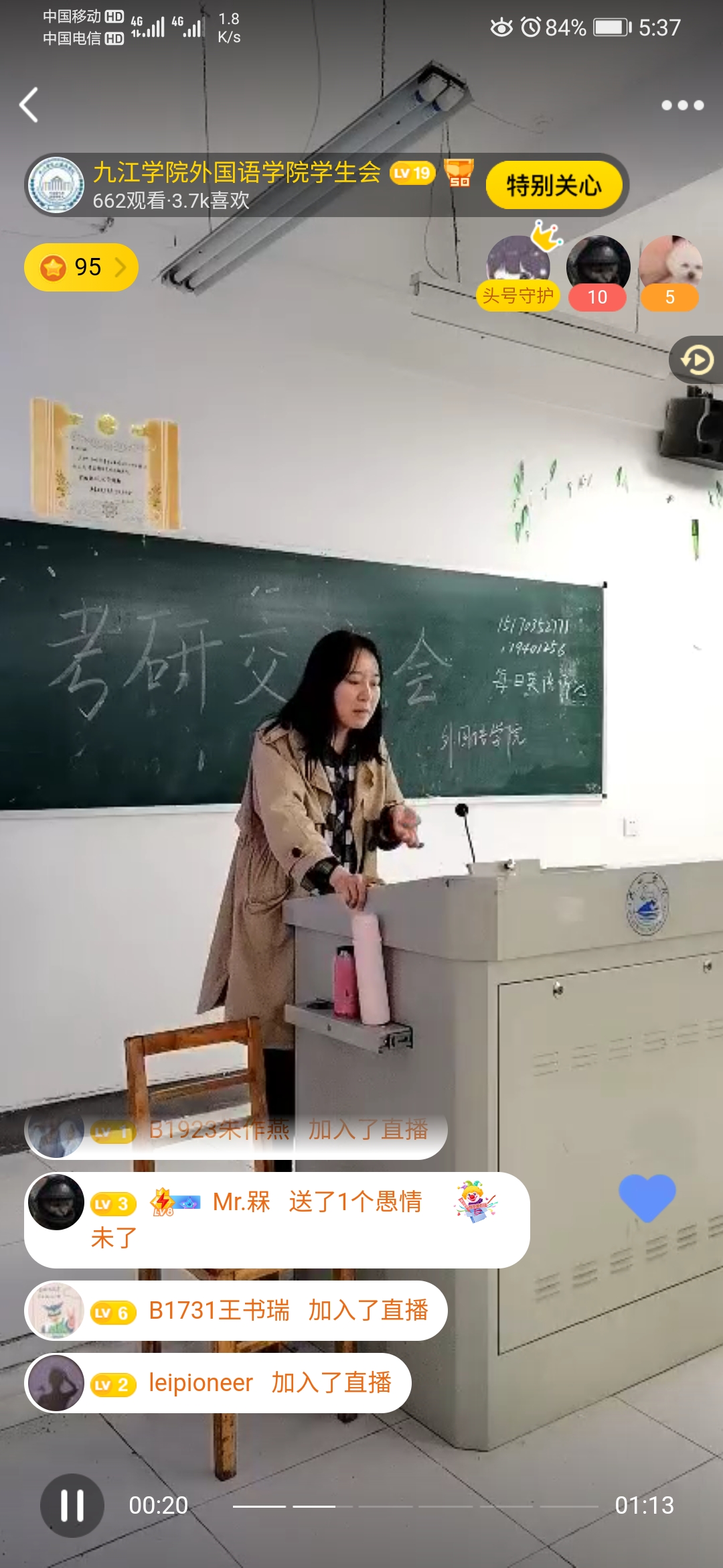 为落实党史学习教育有关工作安排和“我为师生办实事”实践活动要求,进一步加强学风建设,提高学生考研热情,beat365在线唯一官网登录于4月24日下午在香远楼306教室开展考研经验交流会,活动由A1911班姚思吟主持。本次考研交流采用了现场交流和线上直播的形式,线下有100余人现场参加,线上有近700人观看。
