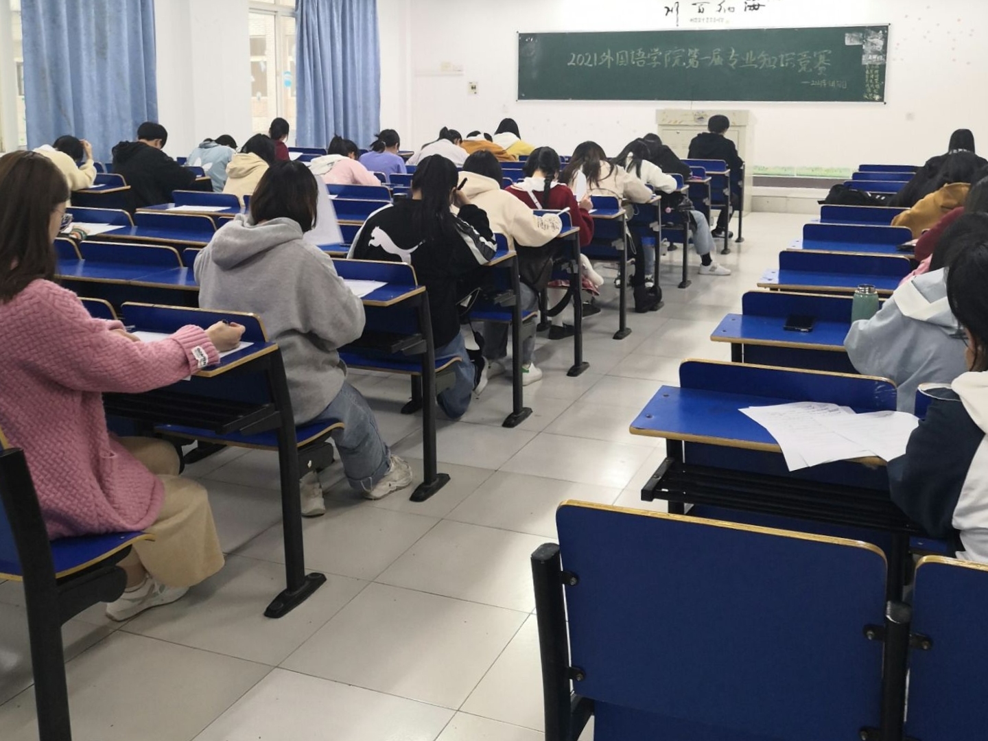 本次知识竞赛邀请专业老师及优秀学生命题,重点考察选手的听、写、思、读能力。每位选手准备充分,细致审题,以最饱满的精神状态认真作答。