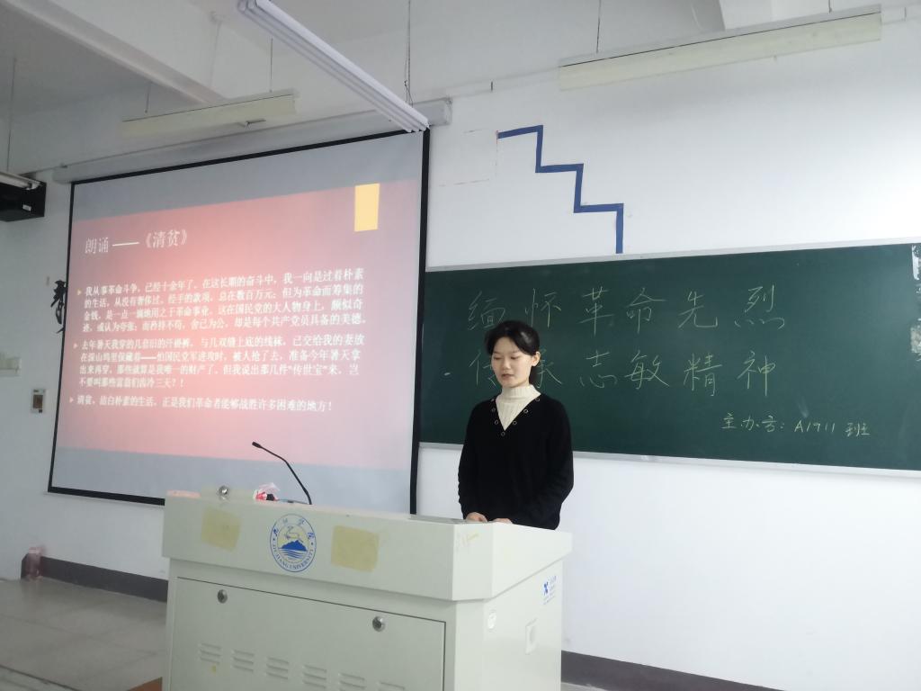 清明祭祀献真情,缅怀先烈念英灵。恰逢清明节即将到来之际,为向革命先烈表达缅怀之情,推进传承红色基因,扎实开展“赣鄱学子心向党”活动,3月30日晚,beat365在线唯一官网登录A1911班在香远楼开展了以“缅怀革命先烈,传承志敏精神”为主题的党史宣讲活动。