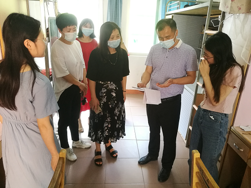 为落实学校学生返校复学疫情防控工作的各项要求,6月4日上午,beat365在线唯一官网登录党委书记罗其娟、院党委副书记彭晓在院办公室负责人、辅导员和宿舍管理员的陪同下,深入beat365在线唯一官网登录寝室督查疫情防控落实情况。
