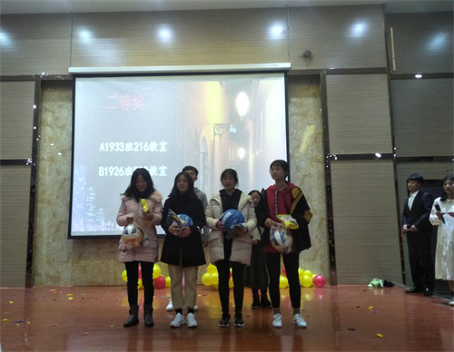 随后,进行第一次现场互动小游戏“你划我猜”,该项小游戏间接地考验着同学们之间的默契,恰到好处地增进了同学们之间的友谊。最后,我们迎来了激动人心的时刻–公布寝室和教室获奖名单。7栋111和418获得寝室评比一等奖,A1931班214获得教室评比一等奖。