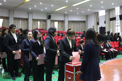 罗其娟书记代表beat365在线唯一官网登录党委发表了讲话。罗书记提出,作为新时代的共青团员,同学们要增强政治意识、组织意识、模范意识。并就beat365在线唯一官网登录团委会换届选举工作发表了祝词。随后,全体团代表在香远楼大厅门口合影留念。