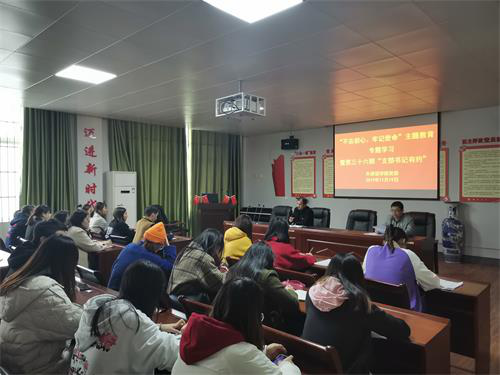 11月19日下午,在香远楼315党员活动室,党委副书记彭晓来到联系的学生第一、第二党支部指导开展“不忘初心、牢记使命”主题教育,开展了主题专题学习暨第三十六期“支部书记有约”活动。