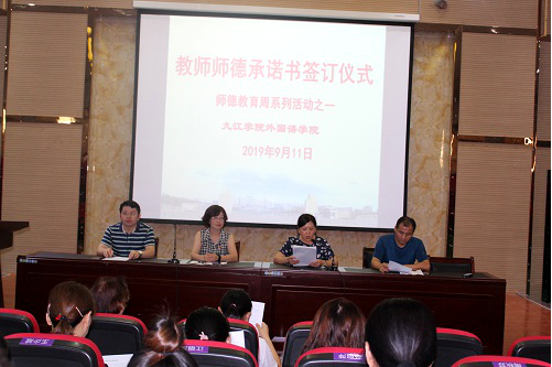 书记罗其娟宣读了习近平总书记关于“四有”好老师的重要讲话精神、《新时代高校教师职业行为十项准则》《关于高校教师师德失范行为处理的指导意见》《江西省高校教师师德失范行为处理实施办法》和《江西省教师师德师风信用体系管理办法(试行)》等师德教育系列文件。罗书记重点解读了《新时代高校教师职业行为十项准则》。