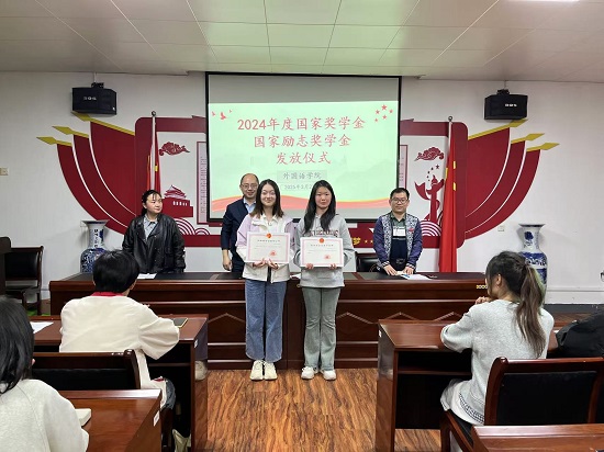 负责资助工作的辅导员阮育芳宣读了2023-2024学年度国家奖学金与国家励志奖学金获奖名单,并进行了证书颁发仪式。发放仪式上,六名获奖代表分别从获奖体会、学习心得、学习方法等方面进行了交流发言,表达了对国家资助政策的感谢和坚定学习的信心。