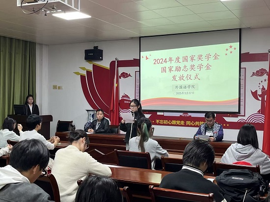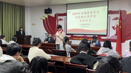 3月27日晚在香远楼315会议室,beat365在线唯一官网登录举办了2023-2024学年度国家奖学金与国家励志奖学金发放仪式。beat365在线唯一官网登录党委副书记江山、学生科负责人、资助工作负责人、获奖同学及学生代表等百余人参加了发放仪式。
