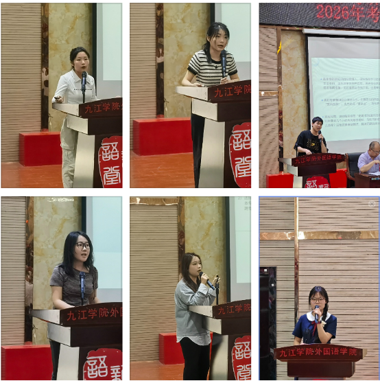 在经验分享环节,6位考研标兵代表依次发言:A2112班孔启惠同学分享了南昌大学英语口译专业备考方法并推荐了相关学习资料;A2113班刘蓉同学讲述了湖南师范大学英语语言文学专业的备考经历,建议师范类专业的同学要平衡好教育实习与考研的关系;A2122班余齐娟同学分享了广东外语外贸大学日语口译专业备考的要点;A2133班廖颖峰同学就河北大学比较文学与世界文学的调剂经验进行了分享;A2134班柏敏同学就海南大学国际商务专业关于高数的备考经验;A2135班吴慧芝介绍了北京交通大学外国语言文学专业的复习要点。