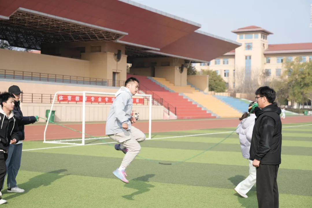 同日,集体团建活动于西操场开展,各种团队项目新颖有趣。八字跳绳,众人如灵动飞燕,默契穿梭;两人三足,搭档似并肩骏马,齐步飞奔;大象鼻子游戏,参与者像眩晕精灵,趣态百出。活动虽简,却让各部门情谊升温,为校园青春画上浓墨重彩的一笔。