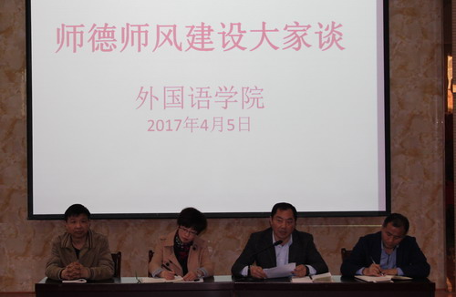为切实加强教师职业道德建设和教师队伍管理,进一步提高师德师风建设水平,4月5日下午,beat365在线唯一官网登录在香远楼三楼学术报告厅,开展师德师风建设大家谈活动,全院教师参加,活动由杨杰书记主持。