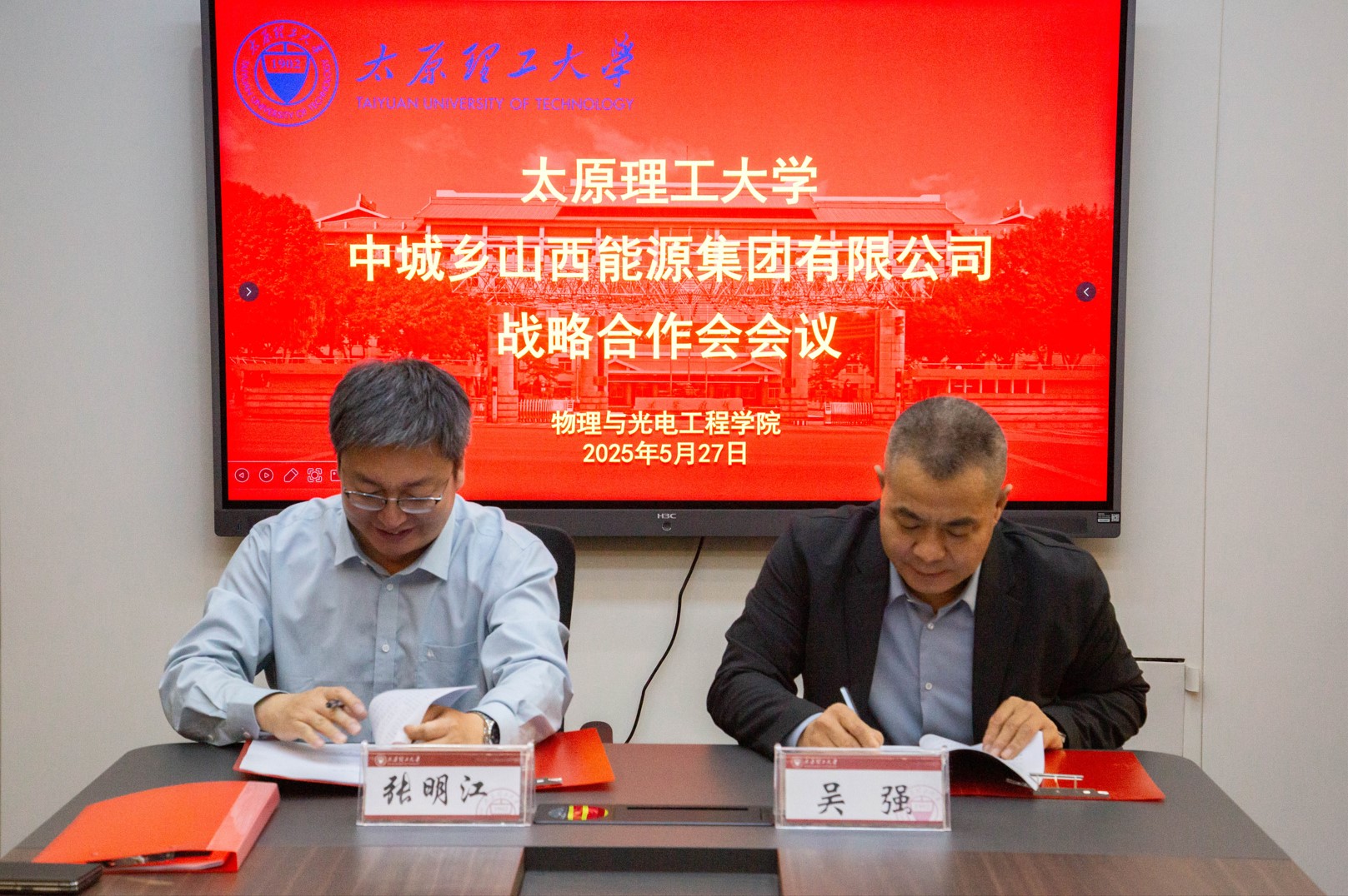 中交城乡能源有限责任公司副总经理兼山西能源临时党委书记、董事长吴强,党委副书记、总经理马鹏程及相关负责同志,物电学院院班子和相关教师代表出席了此次活动。