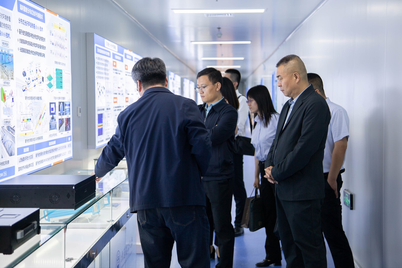 随后,院长张明江和董事长吴强共同为研发中心揭牌,并签订合作共建协议。会后,董事长吴强一行参观了实验室。