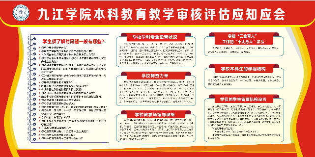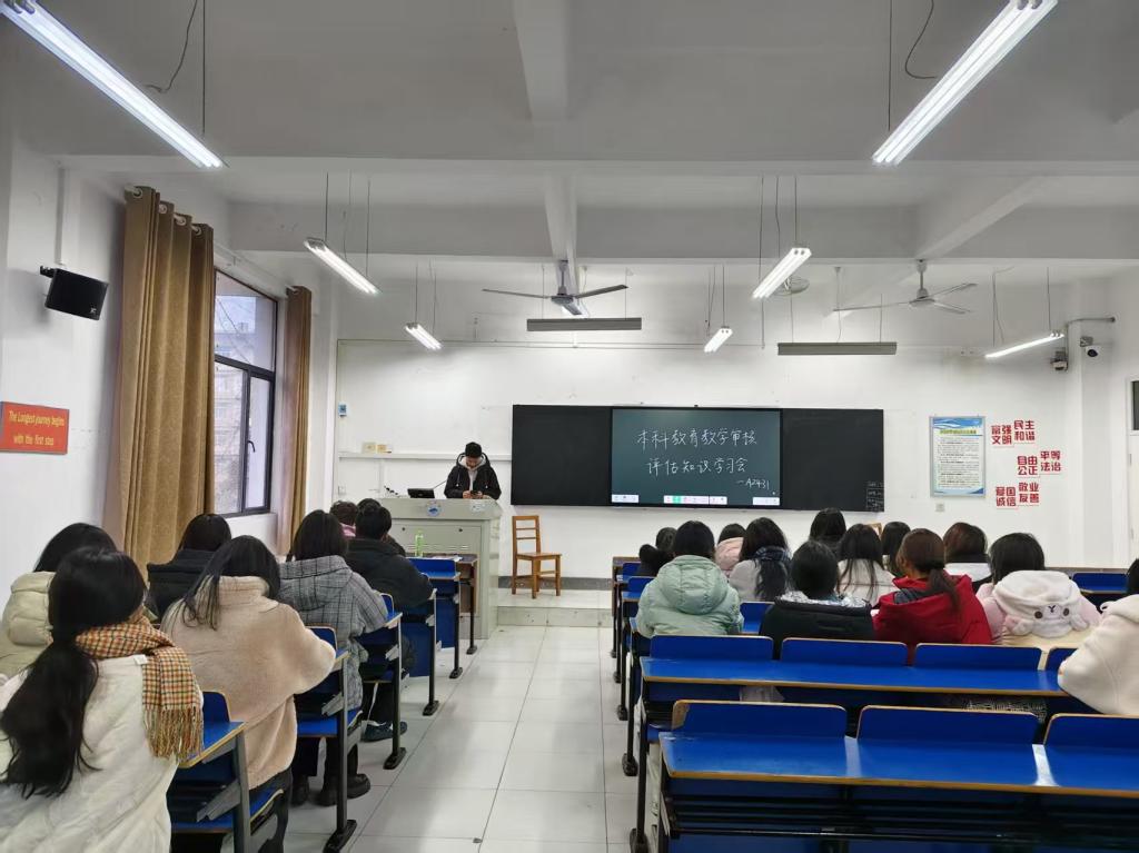 自审核评估工作启动以来,学院积极在学生中营造“人人关心评估、人人了解评估、人人参与评估、人人支持评估”的浓厚氛围,让全体学生全面了解审核评估相关的知识,切实增强学生的责任感、使命感、参与感。