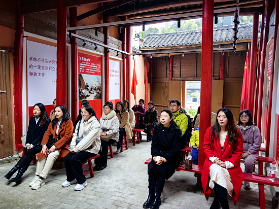集体过政治生日、重温入党誓词。参观完旧址,大家来到红军广场,举行集体政治生日,重温入党誓词。活动由教工第一党支部书记张南主持。教工第二党支部书记陈娟向邹晓燕等党员代表赠送生日贺卡,送上生日祝福。来自教工第一党支部的贺林茂教授代表老一辈党员向三位政治生日党员同志致贺词,勉励年轻党员强化党员宗旨意识,发挥党员先进模范作用,不负共产主义信仰。过政治生日的党员依次发表感言,重新回忆党组织对自己的培养历程,表示将会继续在工作中保持孜孜不倦、无私奉献的精神。最后,教工第三党支部书记姚中平领誓,党员同志们面向党旗列队站立,一起重温入党誓词。一声声誓言铿锵有力,回荡在空旷整洁的红军广场,激励着同志们凝聚信仰,汇聚力量。