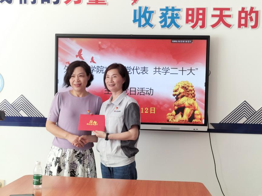 随后,赵小梅为大家上了一堂学习贯彻习近平新时代中国特色社会主义思想主题教育专题党课,生动描绘了党的二十大盛况,分享了参加党的二十大的思考感悟,以及她在企业创办帮扶工段等党建项目做法与成效。她勉励外院学生扎根中国大地,传承红色基因,趁年轻、勤攀登、多奋斗,在中国式现代化的赛道上奋力奔跑、奋勇争先。鼓励老师们坚守立德树人根本任务,把主题教育学习成果转化为干事创业、团结奋进的强大动力。