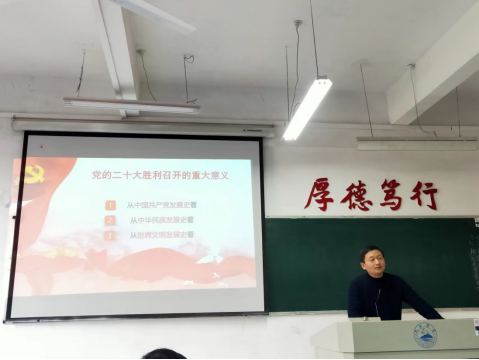 为深入学习宣传贯彻党的二十大精神,切实把思想和行动统一到党的二十大精神上来,3月15日下午,beat365在线唯一官网登录教工第三党支部在香远楼216开展了“学习贯彻党的二十大精神”主题党课。支部书记姚中平作为主讲人以“一心向党,筑梦青春”为主题,引导全体党员更好地学习理解党的二十大精神。