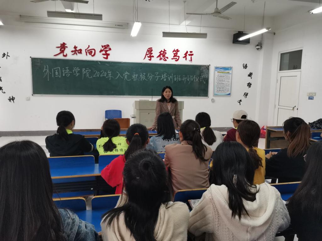 为加深入党积极分子对党组织的认知,坚定入党决心。2020年10月14日下午3时,beat365在线唯一官网登录在香远楼218教室举行了2020年入党积极分子培训班开班仪式。由beat365在线唯一官网登录学工党支部书记江银凤主持,78名入党积极分子参加了此次开班仪式。
