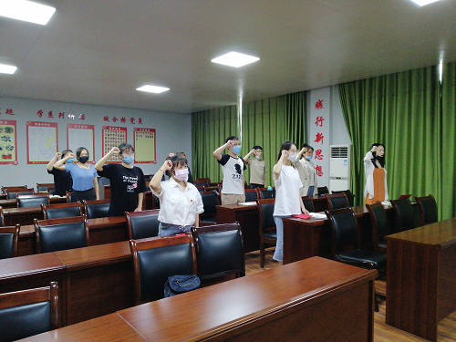 返校的学生党员收到了政治生日贺卡和《习近平新时代中国特色社会主义思想三十讲》学习读本作为政治生日礼物。返校的学生党员重读了入党志愿,一起回忆入党时的情形。在场和线上的全体党员在邓强同志的带领下,面向党旗,庄严举起右手,一起重温了入党誓词。